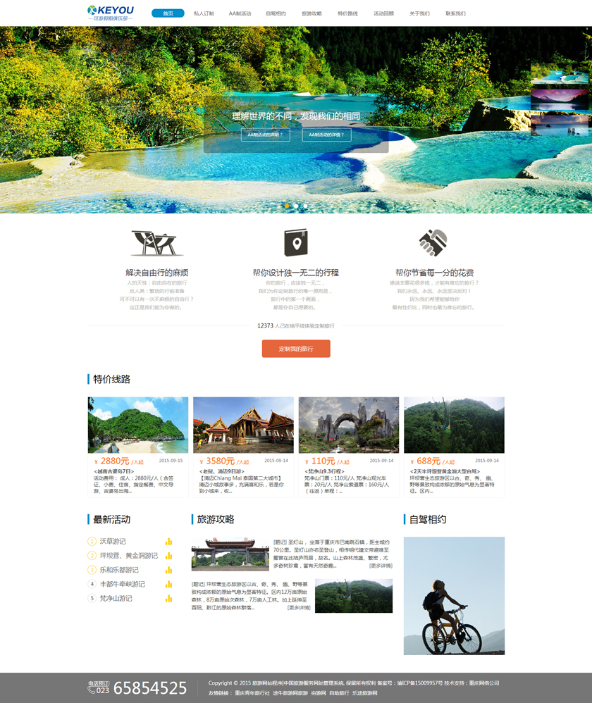 Project Description 6人游旅行网隶属于北京六人游国际旅行社有限公司。打造“为爱出行”:专为家庭,朋友,情侣间的旅行,提供私家小团精品游。打造高品质的旅行产品,解决传统跟团游和自由行存在的问题,将旅行服务做到臻善臻美。 Official website address 益阳http://www.keyoujq.com I want to share