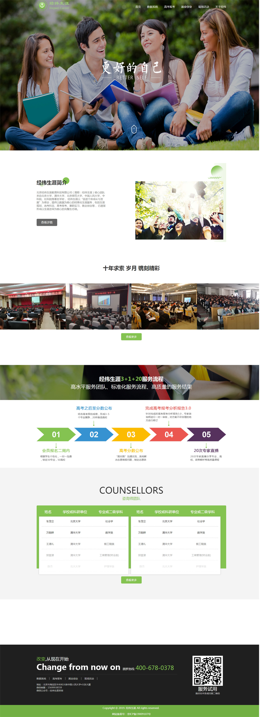 Project Description 北京经纬生涯教育科技有限公司(简称:经纬生涯)核心团队来自北京大学、清华大学、北京师范大学、中国人民大学、中科院、社科院等著名学府, 经纬生涯以“促进个体成长与发展”为使命,提供以数据为核心的结果化生涯服务,包括生涯规划、选考科目、高考报考、兼职实习、就业创业等, 已逐渐形成以生涯咨询为核心的完整生态链。 Official website address 益阳http://www.jingweishengya.com/ I want to share